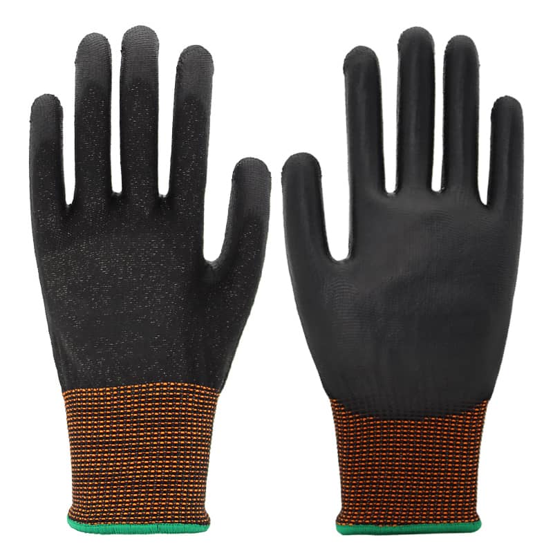 | Features | • 13G liner offers cut resistance performance protection and reduces the risk of contact with sharp tools in some processing industries and mechanical applications. • PU coating on palm is more resistant to dirt, oil and abrasion and perfect for wet and oily working environments. • cut-resistant fiber provides better sensitivity and anti-cut protection while keeping the hands cool and comfortable. |